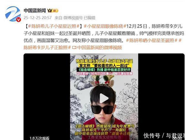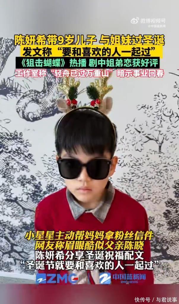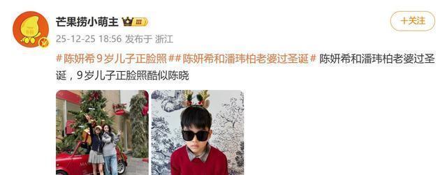这个圣诞节,陈妍希的一则动态直接让网友把焦点从节日聚会,挪到了她儿子的脸上。她主动晒出9岁儿子“小星星”的清晰正面照,瞬间引爆了关于“星二代”颜值遗传、性格乃至儿童隐私保护的一轮热议。 照片里,小星星头戴金色鹿角发箍,架着一副酷酷的黑色墨镜,身穿红色毛衣搭配格纹衬衫,身高已经快够到妈妈肩膀(陈妍希约1.6米,推算小星星近1.5米)。在一场与周扬青、潘玮柏夫妇等约20位好友的圣诞聚会中,他站在红色烛台和礼物堆前,举止显得相当沉稳自然。陈妍希的配文满是温馨:“和喜欢的人一起过节。”